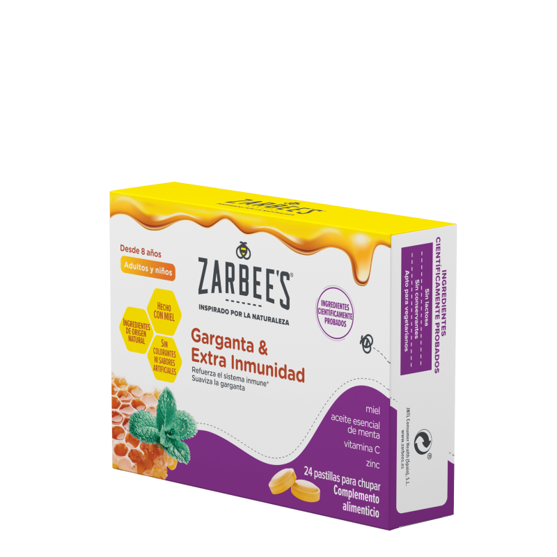 Zarbee's Garganta & Extra Inmunidad son deliciosas pastillas diseñadas para suavizar la garganta y reforzar el sistema inmunitario.