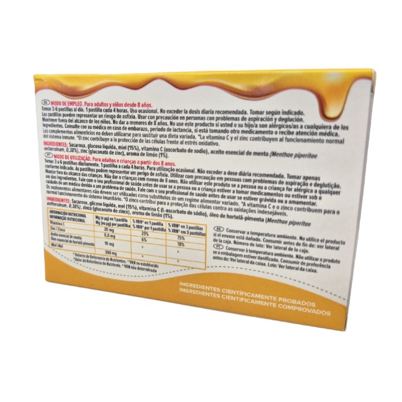 Gracias a su fórmula con vitamina C, zinc y miel, estas pastillas ayudan a fortalecer las defensas naturales y proporcionan un efecto calmante en la garganta, ideal para acompañarte en tu día a día.