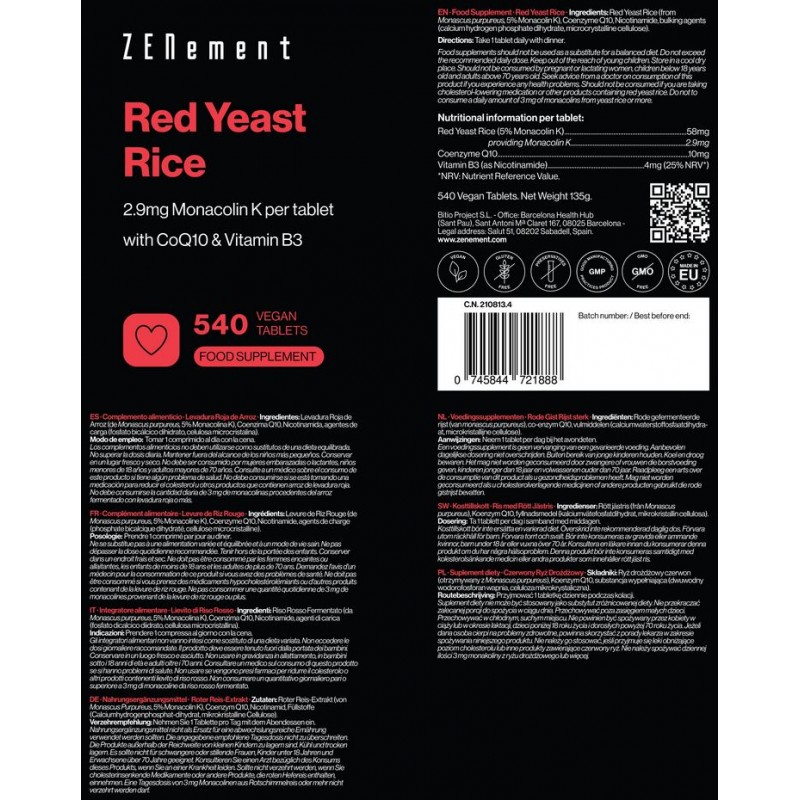 La fórmula de Zenement Levadura Roja de Arroz incluye: