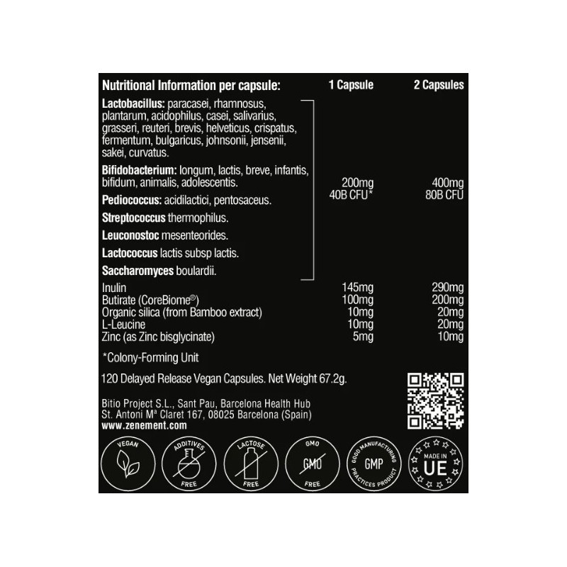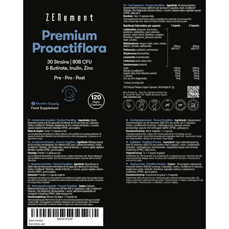 Zenement Premium Proactiflora es un suplemento avanzado diseñado para favorecer el equilibrio de la flora intestinal y mejorar el sistema inmunológico.